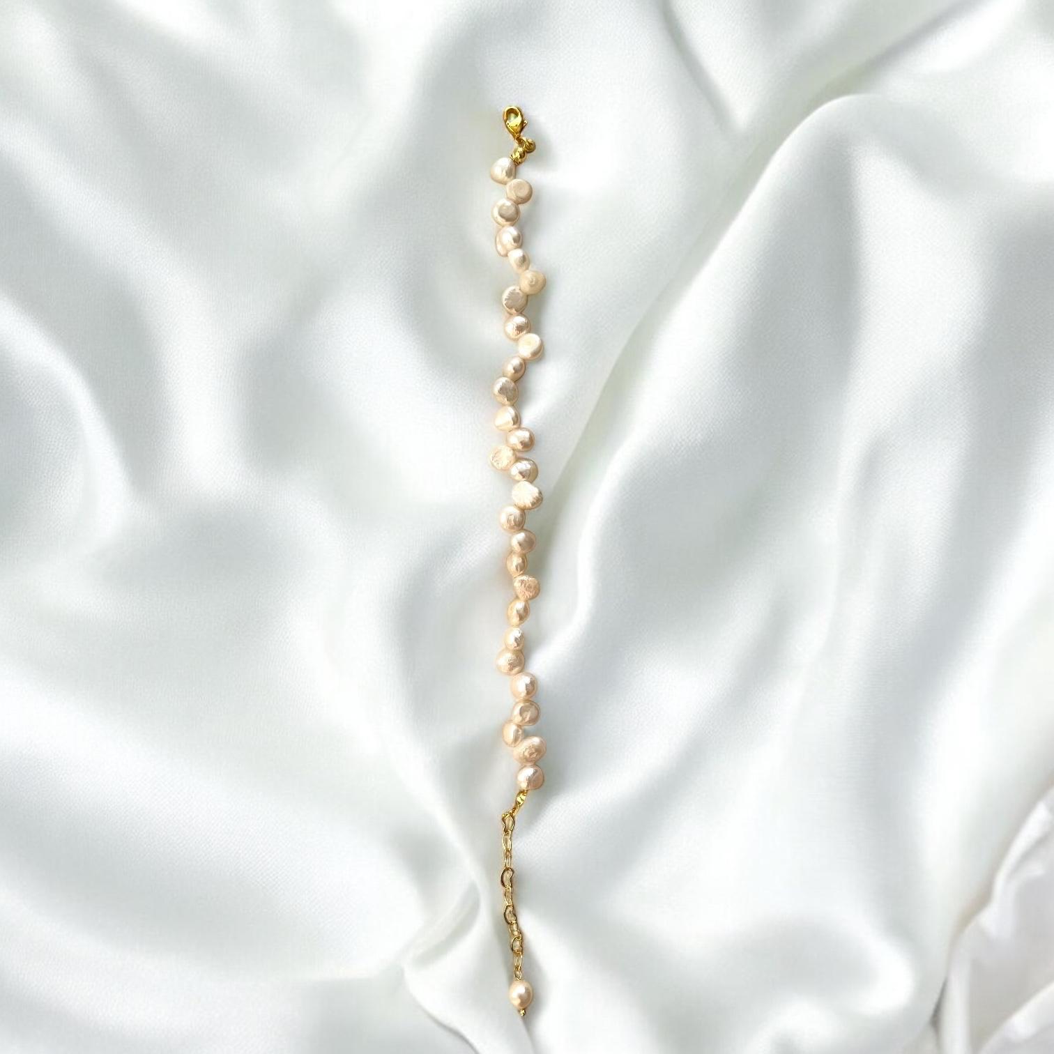 Handgefertigt aus feinsten, schimmernden Süßwasserperlen vereint dieses Armband klassische Schönheit mit modernem Minimalismus.