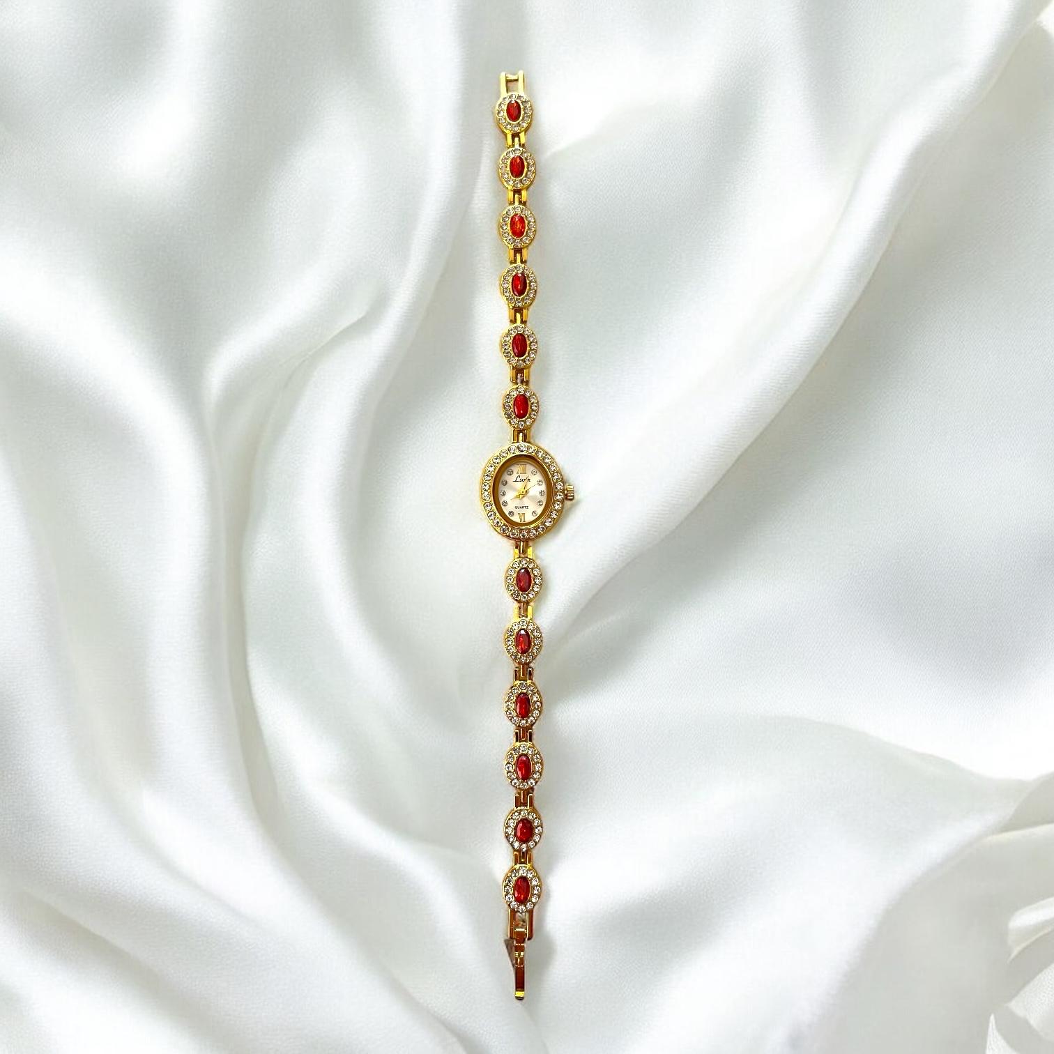 Die Monami Vintage Uhr vereint nostalgischen Charme mit edlem Glanz. Ihr fein gearbeitetes Edelstahlgehäuse und die funkelnden kristallähnlichen Steinchen verleihen ihr einen Hauch von Luxus. Wahlweise mit roten oder grünen Steinchen am Armband verziert, ist sie ein stilvolles Highlight, das jedem Look eine besondere Note verleiht.